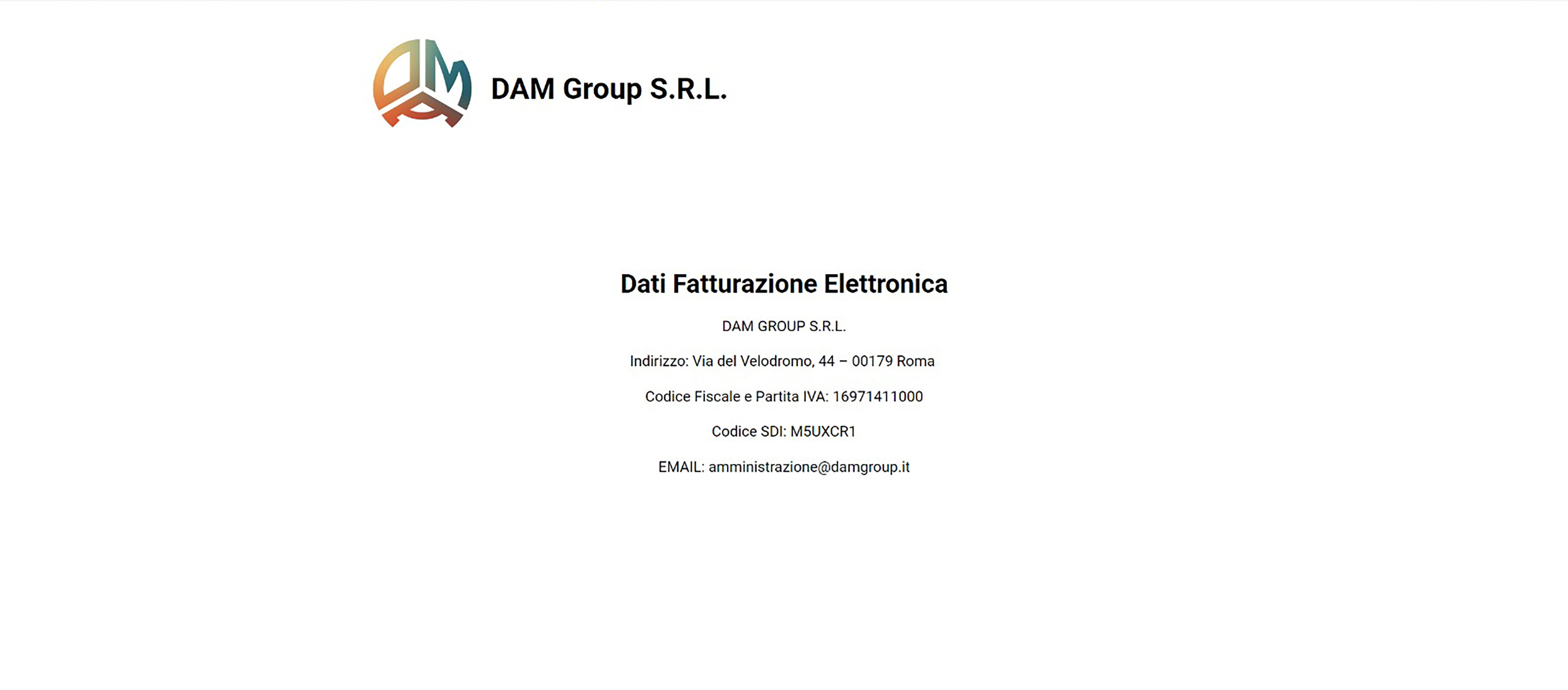 Pagina web collegata ad un QR Code presente sul biglietto da visita, presentante i dati per la fatturazione elettronica. Realizzata con Elementor