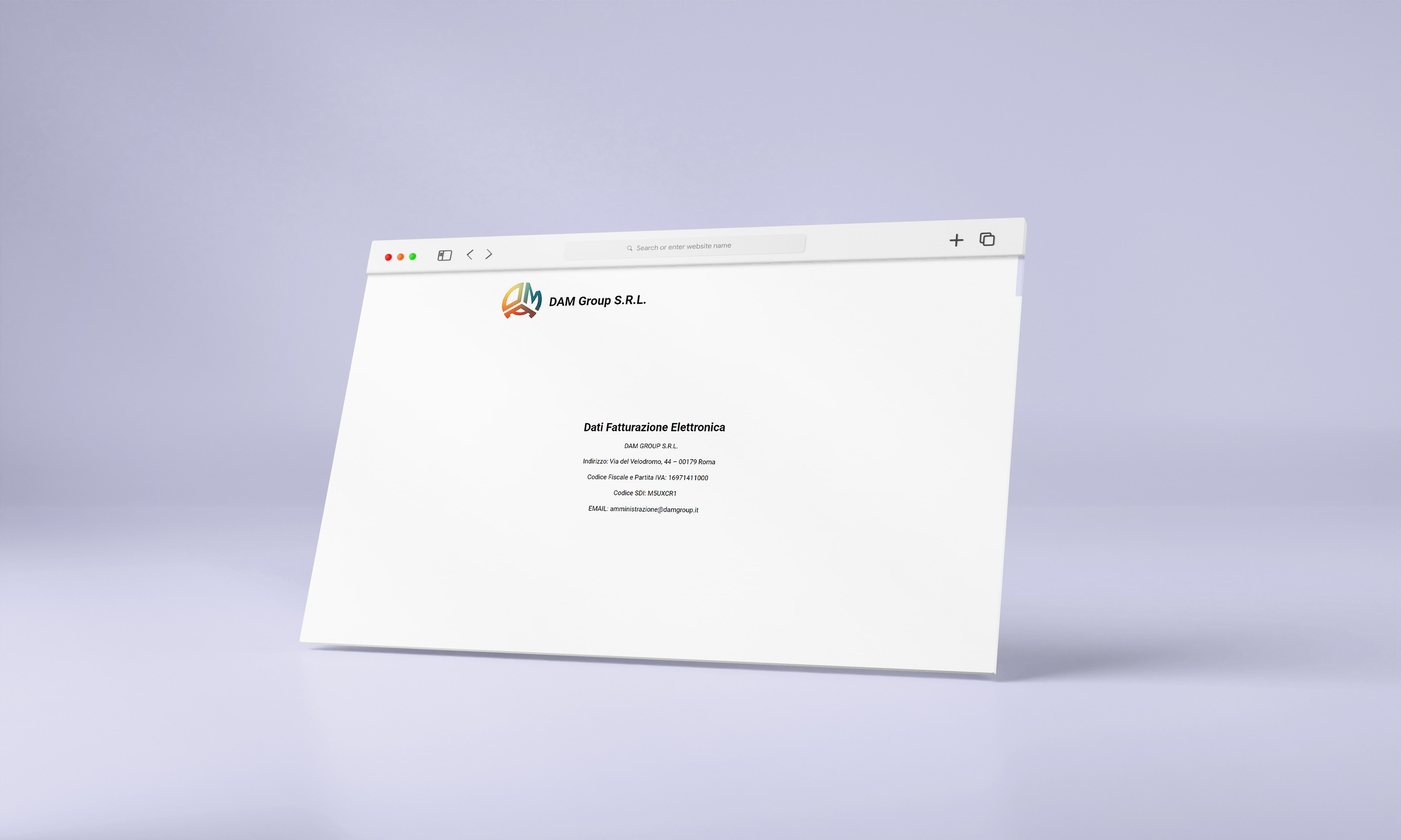 Realizzazione della pagina web del brand DAM Group con Elementor, contenente dati per la fatturazione elettronica